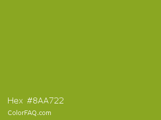 Hex #8aa722 Color is a normal lime color and the nearest color is Citron #9fa91f. Hex code #8aa722 and RGB value is rgb(138,167,34). In RGB color space, this color is composed of 54% red, 65% green, 13% blue, In CMYK color space, this color is composed of 17% cyan, 0% magenta, 80% yellow , 35% black , In HSL color space, this color has a hue angle of 73° , 66% saturation and 39% lightness.