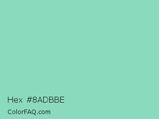 Hex #8adbbe Color is a light green color and the nearest color is Pearl Aqua #88d8c0. Hex code #8adbbe and RGB value is rgb(138,219,190). In RGB color space, this color is composed of 54% red, 86% green, 75% blue, In CMYK color space, this color is composed of 37% cyan, 0% magenta, 13% yellow , 14% black , In HSL color space, this color has a hue angle of 159° , 53% saturation and 70% lightness.