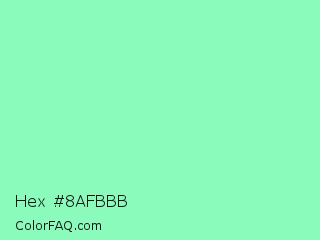 Hex #8afbbb Color is a light green color and the nearest color is Teal Deer #99e6b3. Hex code #8afbbb and RGB value is rgb(138,251,187). In RGB color space, this color is composed of 54% red, 98% green, 73% blue, In CMYK color space, this color is composed of 45% cyan, 0% magenta, 25% yellow , 2% black , In HSL color space, this color has a hue angle of 146° , 93% saturation and 76% lightness.