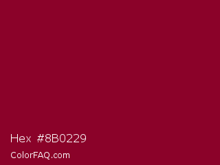 Hex #8b0229 Color is a dark rose color and the nearest color is Paprika #8d0226. Hex code #8b0229 and RGB value is rgb(139,2,41). In RGB color space, this color is composed of 55% red, 1% green, 16% blue, In CMYK color space, this color is composed of 0% cyan, 99% magenta, 71% yellow , 45% black , In HSL color space, this color has a hue angle of 343° , 97% saturation and 28% lightness.