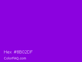 Hex #8b02df Color is a normal purple color and the nearest color is Dark Violet #9400d3. Hex code #8b02df and RGB value is rgb(139,2,223). In RGB color space, this color is composed of 55% red, 1% green, 87% blue, In CMYK color space, this color is composed of 38% cyan, 99% magenta, 0% yellow , 13% black , In HSL color space, this color has a hue angle of 277° , 98% saturation and 44% lightness.