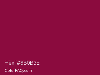 Hex #8b0b3e Color is a dark rose color and the nearest color is Rose Bud Cherry #800b47. Hex code #8b0b3e and RGB value is rgb(139,11,62). In RGB color space, this color is composed of 55% red, 4% green, 24% blue, In CMYK color space, this color is composed of 0% cyan, 92% magenta, 55% yellow , 45% black , In HSL color space, this color has a hue angle of 336° , 85% saturation and 29% lightness.