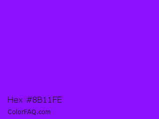 Hex #8b11fe Color is a normal purple color and the nearest color is Electric Violet #8b00ff. Hex code #8b11fe and RGB value is rgb(139,17,254). In RGB color space, this color is composed of 55% red, 7% green, 100% blue, In CMYK color space, this color is composed of 45% cyan, 93% magenta, 0% yellow , 0% black , In HSL color space, this color has a hue angle of 271° , 99% saturation and 53% lightness.
