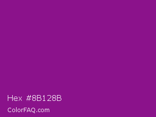 Hex #8b128b Color is a normal magenta color and the nearest color is Dark Magenta #8b008b. Hex code #8b128b and RGB value is rgb(139,18,139). In RGB color space, this color is composed of 55% red, 7% green, 55% blue, In CMYK color space, this color is composed of 0% cyan, 87% magenta, 0% yellow , 45% black , In HSL color space, this color has a hue angle of 300° , 77% saturation and 31% lightness.