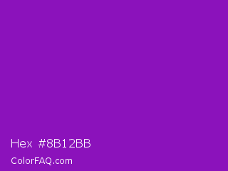 Hex #8b12bb Color is a normal purple color and the nearest color is Violet RYB #8601af. Hex code #8b12bb and RGB value is rgb(139,18,187). In RGB color space, this color is composed of 55% red, 7% green, 73% blue, In CMYK color space, this color is composed of 26% cyan, 90% magenta, 0% yellow , 27% black , In HSL color space, this color has a hue angle of 283° , 82% saturation and 40% lightness.