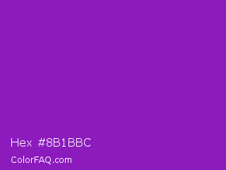 Hex #8b1bbc Color is a normal purple color and the nearest color is French Violet #8806ce. Hex code #8b1bbc and RGB value is rgb(139,27,188). In RGB color space, this color is composed of 55% red, 11% green, 74% blue, In CMYK color space, this color is composed of 26% cyan, 86% magenta, 0% yellow , 26% black , In HSL color space, this color has a hue angle of 282° , 75% saturation and 42% lightness.