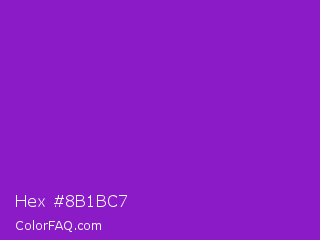 Hex #8b1bc7 Color is a normal purple color and the nearest color is French Violet #8806ce. Hex code #8b1bc7 and RGB value is rgb(139,27,199). In RGB color space, this color is composed of 55% red, 11% green, 78% blue, In CMYK color space, this color is composed of 30% cyan, 86% magenta, 0% yellow , 22% black , In HSL color space, this color has a hue angle of 279° , 76% saturation and 44% lightness.