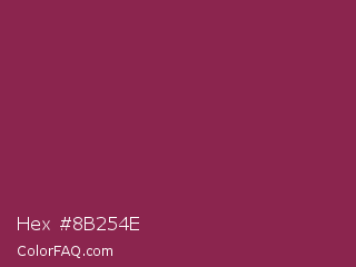 Hex #8b254e Color is a normal rose color and the nearest color is Dark Raspberry #872657. Hex code #8b254e and RGB value is rgb(139,37,78). In RGB color space, this color is composed of 55% red, 15% green, 31% blue, In CMYK color space, this color is composed of 0% cyan, 73% magenta, 44% yellow , 45% black , In HSL color space, this color has a hue angle of 336° , 58% saturation and 35% lightness.