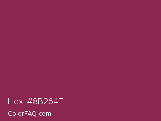 Hex #8b264f Color is a normal rose color and the nearest color is Dark Raspberry #872657. Hex code #8b264f and RGB value is rgb(139,38,79). In RGB color space, this color is composed of 55% red, 15% green, 31% blue, In CMYK color space, this color is composed of 0% cyan, 73% magenta, 43% yellow , 45% black , In HSL color space, this color has a hue angle of 336° , 57% saturation and 35% lightness.