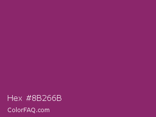 Hex #8b266b Color is a normal magenta color and the nearest color is Boysenberry #873260. Hex code #8b266b and RGB value is rgb(139,38,107). In RGB color space, this color is composed of 55% red, 15% green, 42% blue, In CMYK color space, this color is composed of 0% cyan, 73% magenta, 23% yellow , 45% black , In HSL color space, this color has a hue angle of 319° , 57% saturation and 35% lightness.