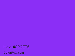 Hex #8b2ef6 Color is a normal violet color and the nearest color is Blue Violet #8a2be2. Hex code #8b2ef6 and RGB value is rgb(139,46,246). In RGB color space, this color is composed of 55% red, 18% green, 96% blue, In CMYK color space, this color is composed of 43% cyan, 81% magenta, 0% yellow , 4% black , In HSL color space, this color has a hue angle of 268° , 92% saturation and 57% lightness.