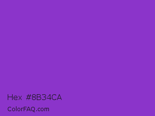 Hex #8b34ca Color is a normal purple color and the nearest color is Dark Orchid #9932cc. Hex code #8b34ca and RGB value is rgb(139,52,202). In RGB color space, this color is composed of 55% red, 20% green, 79% blue, In CMYK color space, this color is composed of 31% cyan, 74% magenta, 0% yellow , 21% black , In HSL color space, this color has a hue angle of 275° , 59% saturation and 50% lightness.