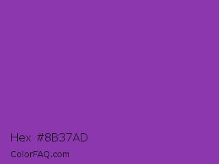 Hex #8b37ad Color is a normal purple color and the nearest color is Purpureus #9a4eae. Hex code #8b37ad and RGB value is rgb(139,55,173). In RGB color space, this color is composed of 55% red, 22% green, 68% blue, In CMYK color space, this color is composed of 20% cyan, 68% magenta, 0% yellow , 32% black , In HSL color space, this color has a hue angle of 283° , 52% saturation and 45% lightness.