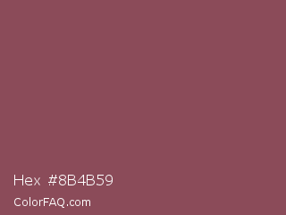 Hex #8b4b59 Color is a normal red color and the nearest color is Deep Ruby #843f5b. Hex code #8b4b59 and RGB value is rgb(139,75,89). In RGB color space, this color is composed of 55% red, 29% green, 35% blue, In CMYK color space, this color is composed of 0% cyan, 46% magenta, 36% yellow , 45% black , In HSL color space, this color has a hue angle of 347° , 30% saturation and 42% lightness.