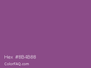 Hex #8b4b88 Color is a normal magenta color and the nearest color is Razzmic Berry #8d4e85. Hex code #8b4b88 and RGB value is rgb(139,75,136). In RGB color space, this color is composed of 55% red, 29% green, 53% blue, In CMYK color space, this color is composed of 0% cyan, 46% magenta, 2% yellow , 45% black , In HSL color space, this color has a hue angle of 303° , 30% saturation and 42% lightness.