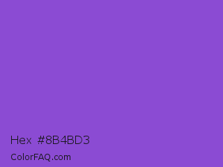 Hex #8b4bd3 Color is a normal violet color and the nearest color is Fuchsia Blue #7a58c1. Hex code #8b4bd3 and RGB value is rgb(139,75,211). In RGB color space, this color is composed of 55% red, 29% green, 83% blue, In CMYK color space, this color is composed of 34% cyan, 64% magenta, 0% yellow , 17% black , In HSL color space, this color has a hue angle of 268° , 61% saturation and 56% lightness.