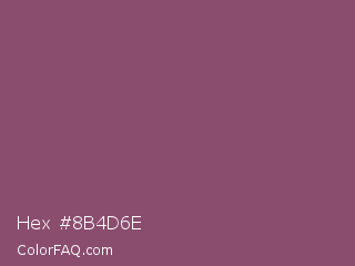 Hex #8b4d6e Color is a normal rose color and the nearest color is Twilight Lavender #8a496b. Hex code #8b4d6e and RGB value is rgb(139,77,110). In RGB color space, this color is composed of 55% red, 30% green, 43% blue, In CMYK color space, this color is composed of 0% cyan, 45% magenta, 21% yellow , 45% black , In HSL color space, this color has a hue angle of 328° , 29% saturation and 42% lightness.