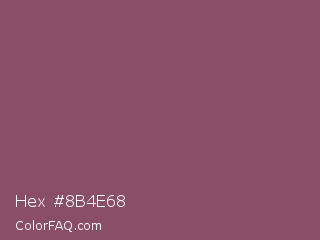 Hex #8b4e68 Color is a normal rose color and the nearest color is Twilight Lavender #8a496b. Hex code #8b4e68 and RGB value is rgb(139,78,104). In RGB color space, this color is composed of 55% red, 31% green, 41% blue, In CMYK color space, this color is composed of 0% cyan, 44% magenta, 25% yellow , 45% black , In HSL color space, this color has a hue angle of 334° , 28% saturation and 43% lightness.