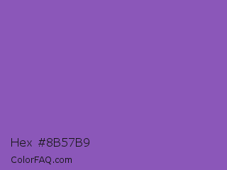 Hex #8b57b9 Color is a normal purple color and the nearest color is Deep Lilac #9955bb. Hex code #8b57b9 and RGB value is rgb(139,87,185). In RGB color space, this color is composed of 55% red, 34% green, 73% blue, In CMYK color space, this color is composed of 25% cyan, 53% magenta, 0% yellow , 27% black , In HSL color space, this color has a hue angle of 272° , 41% saturation and 53% lightness.