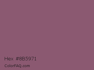 Hex #8b5971 Color is a normal rose color and the nearest color is Mauve Taupe #915f6d. Hex code #8b5971 and RGB value is rgb(139,89,113). In RGB color space, this color is composed of 55% red, 35% green, 44% blue, In CMYK color space, this color is composed of 0% cyan, 36% magenta, 19% yellow , 45% black , In HSL color space, this color has a hue angle of 331° , 22% saturation and 45% lightness.