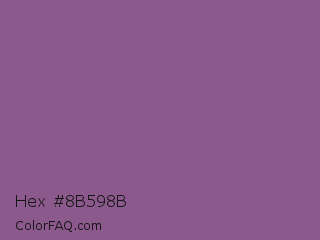 Hex #8b598b Color is a normal magenta color and the nearest color is French Lilac #86608e. Hex code #8b598b and RGB value is rgb(139,89,139). In RGB color space, this color is composed of 55% red, 35% green, 55% blue, In CMYK color space, this color is composed of 0% cyan, 36% magenta, 0% yellow , 45% black , In HSL color space, this color has a hue angle of 300° , 22% saturation and 45% lightness.