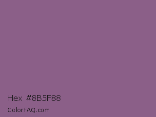 Hex #8b5f88 Color is a normal magenta color and the nearest color is Chinese Violet #856088. Hex code #8b5f88 and RGB value is rgb(139,95,136). In RGB color space, this color is composed of 55% red, 37% green, 53% blue, In CMYK color space, this color is composed of 0% cyan, 32% magenta, 2% yellow , 45% black , In HSL color space, this color has a hue angle of 304° , 19% saturation and 46% lightness.