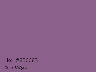 Hex #8b608b Color is a normal magenta color and the nearest color is French Lilac #86608e. Hex code #8b608b and RGB value is rgb(139,96,139). In RGB color space, this color is composed of 55% red, 38% green, 55% blue, In CMYK color space, this color is composed of 0% cyan, 31% magenta, 0% yellow , 45% black , In HSL color space, this color has a hue angle of 300° , 18% saturation and 46% lightness.