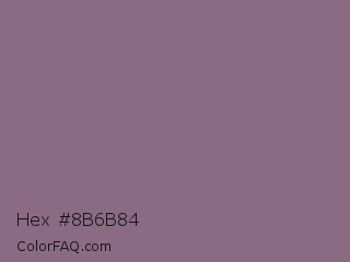Hex #8b6b84 Color is a normal magenta color and the nearest color is Strikemaster #956387. Hex code #8b6b84 and RGB value is rgb(139,107,132). In RGB color space, this color is composed of 55% red, 42% green, 52% blue, In CMYK color space, this color is composed of 0% cyan, 23% magenta, 5% yellow , 45% black , In HSL color space, this color has a hue angle of 313° , 13% saturation and 48% lightness.
