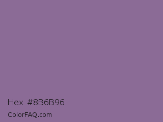 Hex #8b6b96 Color is a normal purple color and the nearest color is Trendy Pink #8c6495. Hex code #8b6b96 and RGB value is rgb(139,107,150). In RGB color space, this color is composed of 55% red, 42% green, 59% blue, In CMYK color space, this color is composed of 7% cyan, 29% magenta, 0% yellow , 41% black , In HSL color space, this color has a hue angle of 285° , 17% saturation and 50% lightness.