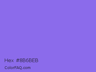 Hex #8b6beb Color is a light indigo color and the nearest color is Medium Slate Blue #7b68ee. Hex code #8b6beb and RGB value is rgb(139,107,235). In RGB color space, this color is composed of 55% red, 42% green, 92% blue, In CMYK color space, this color is composed of 41% cyan, 54% magenta, 0% yellow , 8% black , In HSL color space, this color has a hue angle of 255° , 76% saturation and 67% lightness.