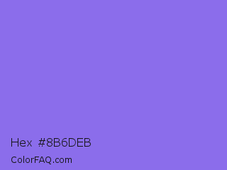 Hex #8b6deb Color is a light indigo color and the nearest color is Medium Slate Blue #7b68ee. Hex code #8b6deb and RGB value is rgb(139,109,235). In RGB color space, this color is composed of 55% red, 43% green, 92% blue, In CMYK color space, this color is composed of 41% cyan, 54% magenta, 0% yellow , 8% black , In HSL color space, this color has a hue angle of 254° , 76% saturation and 67% lightness.