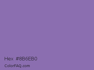 Hex #8b6eb0 Color is a normal violet color and the nearest color is Wisteria #9771b5. Hex code #8b6eb0 and RGB value is rgb(139,110,176). In RGB color space, this color is composed of 55% red, 43% green, 69% blue, In CMYK color space, this color is composed of 21% cyan, 38% magenta, 0% yellow , 31% black , In HSL color space, this color has a hue angle of 266° , 29% saturation and 56% lightness.
