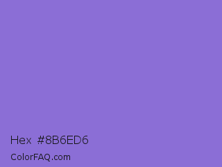 Hex #8b6ed6 Color is a light indigo color and the nearest color is True V #8a73d6. Hex code #8b6ed6 and RGB value is rgb(139,110,214). In RGB color space, this color is composed of 55% red, 43% green, 84% blue, In CMYK color space, this color is composed of 35% cyan, 49% magenta, 0% yellow , 16% black , In HSL color space, this color has a hue angle of 257° , 56% saturation and 64% lightness.