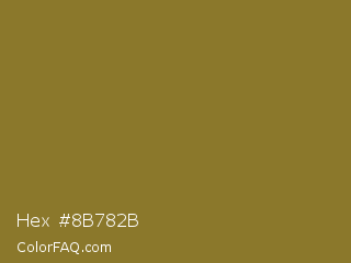 Hex #8b782b Color is a normal yellow color and the nearest color is Spanish Bistre #807532. Hex code #8b782b and RGB value is rgb(139,120,43). In RGB color space, this color is composed of 55% red, 47% green, 17% blue, In CMYK color space, this color is composed of 0% cyan, 14% magenta, 69% yellow , 45% black , In HSL color space, this color has a hue angle of 48° , 53% saturation and 36% lightness.