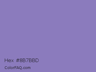 Hex #8b7bbd Color is a light indigo color and the nearest color is Ube #8878c3. Hex code #8b7bbd and RGB value is rgb(139,123,189). In RGB color space, this color is composed of 55% red, 48% green, 74% blue, In CMYK color space, this color is composed of 26% cyan, 35% magenta, 0% yellow , 26% black , In HSL color space, this color has a hue angle of 255° , 33% saturation and 61% lightness.