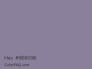 Hex #8b809b Color is a normal violet color and the nearest color is Mamba #8e8190. Hex code #8b809b and RGB value is rgb(139,128,155). In RGB color space, this color is composed of 55% red, 50% green, 61% blue, In CMYK color space, this color is composed of 10% cyan, 17% magenta, 0% yellow , 39% black , In HSL color space, this color has a hue angle of 264° , 12% saturation and 55% lightness.