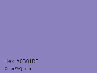 Hex #8b81be Color is a light indigo color and the nearest color is Ube #8878c3. Hex code #8b81be and RGB value is rgb(139,129,190). In RGB color space, this color is composed of 55% red, 51% green, 75% blue, In CMYK color space, this color is composed of 27% cyan, 32% magenta, 0% yellow , 25% black , In HSL color space, this color has a hue angle of 250° , 32% saturation and 63% lightness.