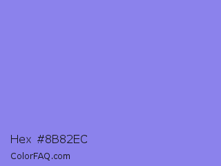 Hex #8b82ec Color is a light indigo color and the nearest color is Chetwode Blue #8581d9. Hex code #8b82ec and RGB value is rgb(139,130,236). In RGB color space, this color is composed of 55% red, 51% green, 93% blue, In CMYK color space, this color is composed of 41% cyan, 45% magenta, 0% yellow , 7% black , In HSL color space, this color has a hue angle of 245° , 74% saturation and 72% lightness.