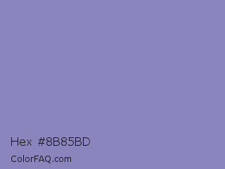 Hex #8b85bd Color is a light indigo color and the nearest color is Ube #8878c3. Hex code #8b85bd and RGB value is rgb(139,133,189). In RGB color space, this color is composed of 55% red, 52% green, 74% blue, In CMYK color space, this color is composed of 26% cyan, 30% magenta, 0% yellow , 26% black , In HSL color space, this color has a hue angle of 246° , 30% saturation and 63% lightness.