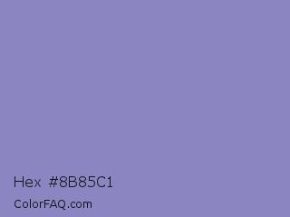 Hex #8b85c1 Color is a light indigo color and the nearest color is Ube #8878c3. Hex code #8b85c1 and RGB value is rgb(139,133,193). In RGB color space, this color is composed of 55% red, 52% green, 76% blue, In CMYK color space, this color is composed of 28% cyan, 31% magenta, 0% yellow , 24% black , In HSL color space, this color has a hue angle of 246° , 33% saturation and 64% lightness.
