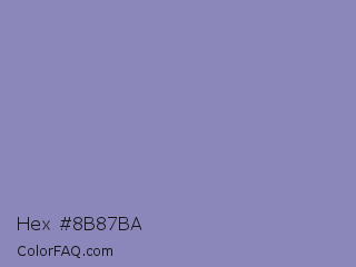Hex #8b87ba Color is a light indigo color and the nearest color is Lavender Purple #967bb6. Hex code #8b87ba and RGB value is rgb(139,135,186). In RGB color space, this color is composed of 55% red, 53% green, 73% blue, In CMYK color space, this color is composed of 25% cyan, 27% magenta, 0% yellow , 27% black , In HSL color space, this color has a hue angle of 245° , 27% saturation and 63% lightness.