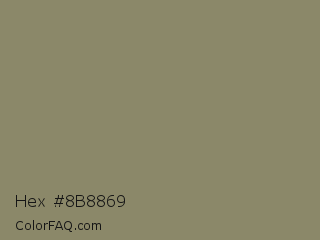 Hex #8b8869 Color is a normal yellow color and the nearest color is Avocado Pulp #888d65. Hex code #8b8869 and RGB value is rgb(139,136,105). In RGB color space, this color is composed of 55% red, 53% green, 41% blue, In CMYK color space, this color is composed of 0% cyan, 2% magenta, 24% yellow , 45% black , In HSL color space, this color has a hue angle of 55° , 14% saturation and 48% lightness.