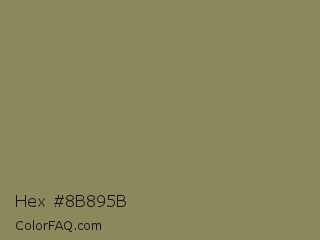 Hex #8b895b Color is a normal yellow color and the nearest color is Clay Creek #8a8360. Hex code #8b895b and RGB value is rgb(139,137,91). In RGB color space, this color is composed of 55% red, 54% green, 36% blue, In CMYK color space, this color is composed of 0% cyan, 1% magenta, 35% yellow , 45% black , In HSL color space, this color has a hue angle of 58° , 21% saturation and 45% lightness.