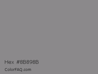 Hex #8b898b Color is a normal magenta color and the nearest color is Taupe Gray #8b8589. Hex code #8b898b and RGB value is rgb(139,137,139). In RGB color space, this color is composed of 55% red, 54% green, 55% blue, In CMYK color space, this color is composed of 0% cyan, 1% magenta, 0% yellow , 45% black , In HSL color space, this color has a hue angle of 300° , 1% saturation and 54% lightness.