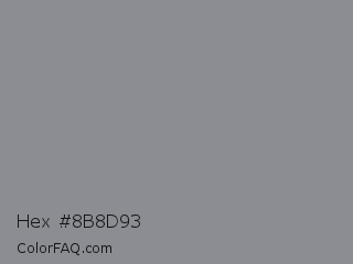 Hex #8b8d93 Color is a normal blue color and the nearest color is Oslo Gray #878d91. Hex code #8b8d93 and RGB value is rgb(139,141,147). In RGB color space, this color is composed of 55% red, 55% green, 58% blue, In CMYK color space, this color is composed of 5% cyan, 4% magenta, 0% yellow , 42% black , In HSL color space, this color has a hue angle of 225° , 4% saturation and 56% lightness.
