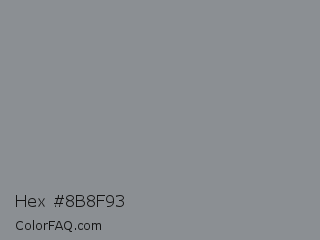 Hex #8b8f93 Color is a normal blue color and the nearest color is Oslo Gray #878d91. Hex code #8b8f93 and RGB value is rgb(139,143,147). In RGB color space, this color is composed of 55% red, 56% green, 58% blue, In CMYK color space, this color is composed of 5% cyan, 3% magenta, 0% yellow , 42% black , In HSL color space, this color has a hue angle of 210° , 4% saturation and 56% lightness.