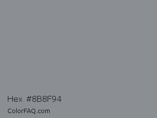 Hex #8b8f94 Color is a normal blue color and the nearest color is Oslo Gray #878d91. Hex code #8b8f94 and RGB value is rgb(139,143,148). In RGB color space, this color is composed of 55% red, 56% green, 58% blue, In CMYK color space, this color is composed of 6% cyan, 3% magenta, 0% yellow , 42% black , In HSL color space, this color has a hue angle of 213° , 4% saturation and 56% lightness.