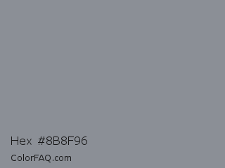 Hex #8b8f96 Color is a normal blue color and the nearest color is Oslo Gray #878d91. Hex code #8b8f96 and RGB value is rgb(139,143,150). In RGB color space, this color is composed of 55% red, 56% green, 59% blue, In CMYK color space, this color is composed of 7% cyan, 5% magenta, 0% yellow , 41% black , In HSL color space, this color has a hue angle of 218° , 5% saturation and 57% lightness.