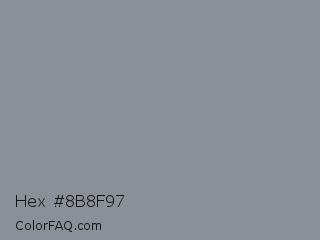 Hex #8b8f97 Color is a normal blue color and the nearest color is Oslo Gray #878d91. Hex code #8b8f97 and RGB value is rgb(139,143,151). In RGB color space, this color is composed of 55% red, 56% green, 59% blue, In CMYK color space, this color is composed of 8% cyan, 5% magenta, 0% yellow , 41% black , In HSL color space, this color has a hue angle of 220° , 5% saturation and 57% lightness.