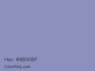 Hex #8b90bf Color is a light blue color and the nearest color is Cool Grey #8c92ac. Hex code #8b90bf and RGB value is rgb(139,144,191). In RGB color space, this color is composed of 55% red, 56% green, 75% blue, In CMYK color space, this color is composed of 27% cyan, 25% magenta, 0% yellow , 25% black , In HSL color space, this color has a hue angle of 234° , 29% saturation and 65% lightness.